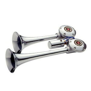 iimono117 2連 エアーホーン 24V/12V共用 シルバーメタリック ホーン ラッパ エアーホーン 車 トラック エアホーン クラクション