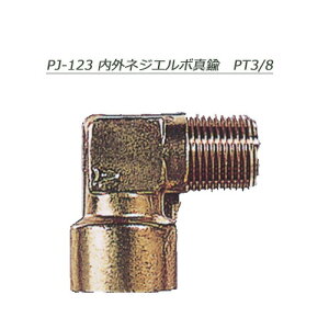 PJ-123 内外ネジエルボ真鍮 PT3/8 コメント ■PT3/8のL型接続用 ご注意事項 ■この商品はエアーホーン用のパーツです。 継手のネジ部分には、シールテープまたは既製のシール材を使用して下さい。