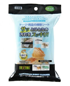 フンの汚れ・えさの汚れ・床材の汚れ・ガラス面の曇りに! ●爬虫類・両生類飼育用品専用のお掃除ウェットシート。毎日のお世話のついでにサッと掃除して、キレイをキープ。 ●pH安定剤不使用なので、肌への刺激が少ないため生体に触れ