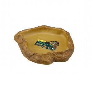 自然の岩をイメージしたテラリウムにぴったりな爬虫類・両生類用の水飲み皿 ●自然の岩をイメージしたデザインの水飲み皿で、レイアウトしたテラリウムにも最適です。 ●内側には安全ステップ付きで、小さな生体やエサ昆虫が溺れるの