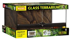 爬虫類・両生類飼育に最適なガラス製テラリウムケージ、グラステラリウム リアルな岩肌のバックグラウンド付! ヨーロッパ仕様の機能的でデザイン性に優れた爬虫類・両生類飼育用ケージ。 メンテナンスや給餌に便利な両開きのフロントド