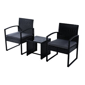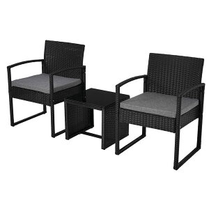 ・素材 本体:樹脂 クッション: (生地)ポリエステル (中身)ポリエステル ポリプロピレン ・カラー 本体:ブラック クッション:ベージュ、グレー ・商品サイズ 椅子ごと:190×69×67cm テーブル:55.5×55.5×40c...