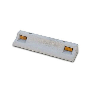 コンクリート製の車止めです。反射板、固定用アンカーピン2本付き。 ●反射板の付いたコンクリート製の車止めです。地面が土の場合は付属の固定用アンカーピン(鉄製)を打ち込んでズレを防止できます。地面がコンクリートやアスファルト