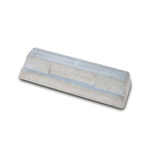 コンクリート製の車止めです。重量がありズレにくい構造です。 ●コンクリート製の車止めです。コンクリートやアスファルトの地面ではそのまま置いても使用できますが、別売りのコンクリート・レンガ接着剤(ナルシルバー)などをご利用