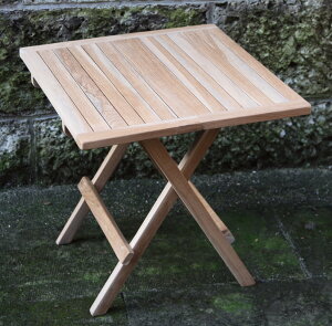 チーク、マホガニー、ウォルナットは世界の三大銘木と言われ、非常に磨耗に強い高級木材として有名です。 そのチーク材できた折りたたみ式のテーブルです。 しかも無垢材のみを使用した贅沢品! 折りたたみ式なので庭先やベランダ等で
