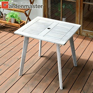 山善 YAMAZEN ガーデンマスター ガーデンテーブル 木製 パラソル穴付き MFT-7575(WHW) ホワイトウォッシュ 本体サイズ 幅75×奥行75×高さ73.5cm 重量9.5kg 材質 天然木(マランティ)...