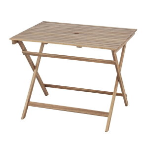 天然木のアカシア材を使用した、木製のフォールディングテーブルです。使わないときは折りたたみすることができます。天板中央には穴を開けており、パラソルの設置が可能です。幅120×奥行き70cmの広々設計。