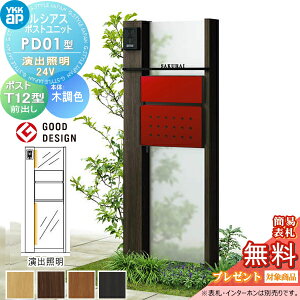 商 品 詳 細商品名ルシアスポストユニット PD01型 演出照明タイプ(24V) 本体 木調色 ポスト T12型(前出し) 機能門柱 機能ポール LED 一戸建て用 屋外 一体型セットサイズ詳細図でご確認下さい...