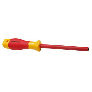 ■商品内容●材質はクロムバナジウムモリブジン鋼。●二種類の素材から成る1000V絶縁ハンドルは赤と黄のツートンカラーを採用することで、非絶縁ツールとの差別化を図っています。●細形タイプ。●先端部は黒く表面処理されています。