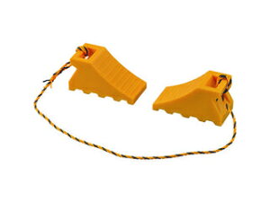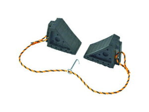 【特長】ゴム製なのでグリップ力が強くズレにくい、乗用車用の輪止めです。取っ手が付いているため、持ち運びに便利です。2個をトラロープで連結し、収納用のフックが付いています。【用途】一般車両や工事用車両の安全確保に。【仕様