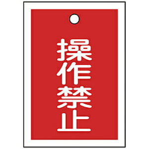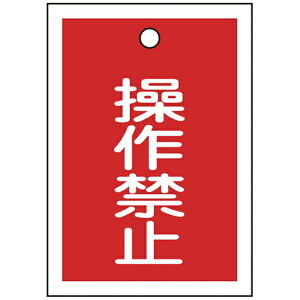 ■熱圧着一体成型(ラミ加工)により文字を封入しているため、摩擦による文字消えはありません。【用途】・バルブの設置場所に。【仕様】・色: 赤・表示内容: 操作禁止・縦(mm): 55・横(mm): 40・厚さ(mm): 1・取付仕様: 吊り