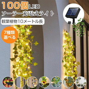 LEDストリングライト太陽光充電 イルミネーションライト 観葉植物 造花グリーン インテリア 藤 緑 部屋装飾 パーティー電飾 庭 結婚式 誕生日 新年飾りライト キャンプ用 電球色 10M
