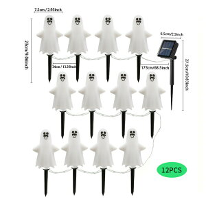 【スーパーキュートで怖いハロウィーンの装飾ライト】屋外のハロウィーンの装飾のためのフェイスソーラーライト、かわいくて怖いハロウィーンの雰囲気のためにあなたの庭を照らすための8または12の怖い悪夢のゴーストライト。超楽しい