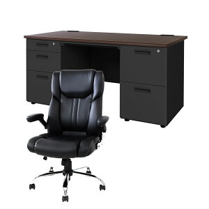 バイヤーおすすめポイント 取っ手にアクセントをつけた高級役員机。 高級感たっぷりで、社長様・役員様用の家具として最適です。 左右袖箱はオールロック錠付き、右袖上段は木製ペントレー付きで、左袖上下段・右袖下段にはA4ファイル