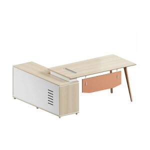 悠々とした広さで独立したエグゼクティブスペースを確立するL字デスク幅1800mmのデスク+サイドテーブルです。サイドテーブルは左右対応。スペースを分けて効率的に作業できます。柔和な役員空間へ導くナチュラルな木目調デザインです。