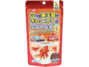 【商品説明】納豆菌に加え、新たに乳酸菌と酵母菌を配合。この3つの善玉菌の力で金魚の腸内細菌のバランスを整え、水の汚れや嫌なニオイを減らします。更に金魚の色を鮮やかにするカロチノイド配合の色揚げ用栄養フード。小粒タイプ。