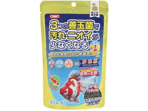 【商品説明】乳酸菌・酵母菌が腸の健康を維持し、納豆菌がフンや食べ残しを分解、ニオイを抑る。天然色揚げ成分スピルリナと、アスタキサンチンを豊富に含むシュリンプミールが色鮮やかな金魚の体色を保つ。ピュアクリア製法で、飼育
