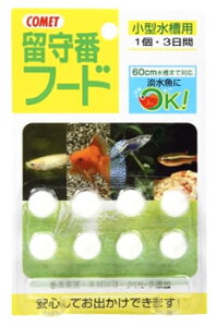 リニューアルに伴いパッケージ・内容等予告なく変更する場合がございます。予めご了承ください。 名 称 コメット 留守番フード 小型水槽用 内容量 8個 特 徴 ◆観賞魚の栄養補給ができる飼料です! ◆数日間家を留守にする際に! ◆少