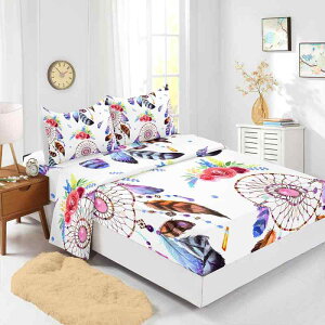 ・カテゴリ: 寝具・スタイル: ボックスシーツ式・テイスト: 北欧風・セット内容: 3点セット・主な素材: 化繊・印染方法: 活性染め・織り方: 磨毛加工・柄: 幾何学模様・花柄: 羽根・カラー展開: ホワイト・サイズ展開: US T...