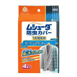 ムシューダ 防虫カバー スーツ・ジャケット用 1年防虫4枚入ブランド:ムシューダ販売・製造元:エステー1年間の防虫効果で大切な衣類を虫・ホコリから守るカバータイプの防虫剤です。不織布使用のため通気性に優れ...