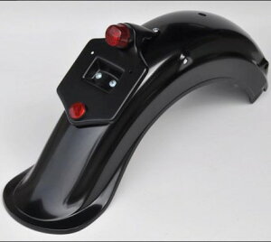 ■商品概要フェンダー本体:FRP製黒ゲルコート仕上げ■詳細説明シンプルにして流れるようなラインを持ったクラシックフェンダーに、丸型のテールランプとナンバープレートホルダーが一体化されたデザインです。エンド部分に向かってや