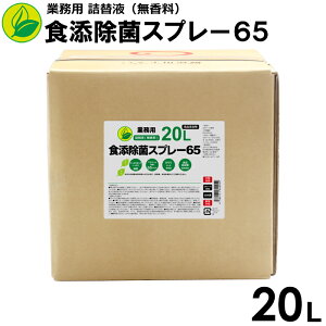 商品説明商品説明 【送料無料】食添除菌スプレー65 業務用に便利な詰替液 20L(コック付)です。 日本製で安心のエタノール製剤です。 危険物ではありません。 (法令による保管場所・保管量の制限、許可申請手続きなどは不要です)...