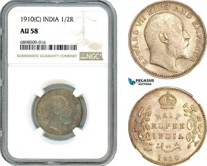 AJ503, India (British) Edward VII, 1/2 Rupee 1910 C, Calcultta, Silver, NGC AU58商品についてNGC認定グレードAU58注意事項※以下の注意事項をご理解のう...
