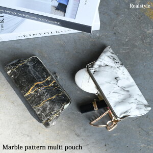 商品名:大理石風 撥水 エナメル 横型 がま口 マルチポーチ