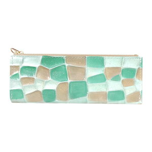 ラウンド型 ペンケース 本革 薄型 コンパクト スリム 筆箱 ペン入れ 筆入れ シンプル ステーショナリー 牛革 型押し エナメル レザー ちょっと上品なステンドグラス