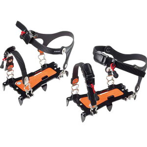操作の簡単なバックル式10本爪アイゼンVクロスバンド・2バックルシステムで着脱が簡単スムーズです。誤挿入防止機能付きのワンタッチバックルシステムや靴をしっか。