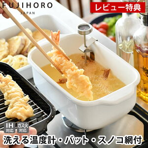 富士ホーロー 角型天ぷら鍋 角型 IH対応 ワイド 温度計の解説 少ない油で長い食材も調理しやすい角型天ぷら鍋です。 横に長い設計となっており、深さもあるのでいろんな食材が調理可能◎。 重ねて収納できるため、コンロ下の引き出しなど