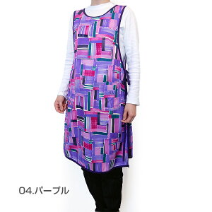 ズ。手作業でのプリントによる個性的なデザインが魅力的で、日常にエレガントな雰囲気を添えます。割烹着のようにすっぽりかぶるタイプのエプロン。ショート丈なので、動きやすく、一番汚れやすい部分をしっかりとカバー...