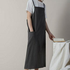 さっと楽に着脱できてオシャレなエプロン! 丈夫で肌触りの優しいコットン製で防水性も◎ 華奢な細めのショルダーストラップがオシャレなワンピースのようなデザイン ロング丈でもスリット入りで動きが楽なのもポイント...