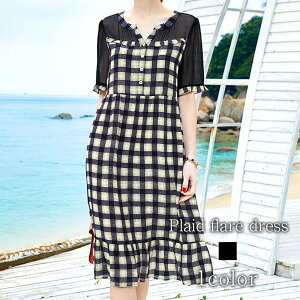 【商品名】チェック柄フレアワンピース【カラー】ブラック【サイズ】M L XL 2XL【サイズ表記】・Mサイズ:着丈104 身幅100 肩幅38 袖丈29・Lサイズ:着丈105 身幅104 肩幅39 袖丈30...