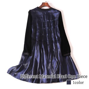 【商品名】異素材フレアワンピース【カラー】ネイビー【サイズ】L XL 2XL 3XL【サイズ表記】・Lサイズ:着丈88 身幅96 肩幅36 袖丈54・XLサイズ:着丈89 身幅100 肩幅37 袖丈55...