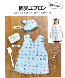 m)直線縫いだから手づくり初心者ママでも超かんたん!お子様がひとりで着られる、後ろゴム仕様のエプロンと三角巾のセット。身長95〜103cmと、104〜115cmの2サイズ。※この商品は型紙です※この商品だけでメール便
