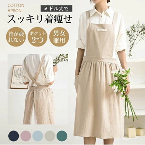 レディース エプロン かぶるだけ おしゃれ ワンピース風 大人可愛い かわいい 北欧 コットン 撥水 ロングエプロン 大きいサイズ 着脱簡単 肩紐 調節 軽い かぶり カフェエプロン シンプル ロング...