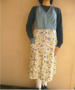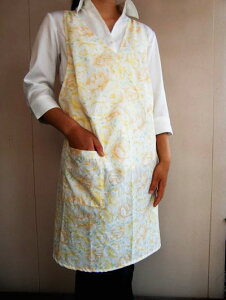 ポリエステル30% 綿ブロード使用 全体に綿ブロード素材で作ったイエローフラワーのドレス風サロンエプロンです! 【送料無料の場合】メール便で発送いたします。 【代引きの