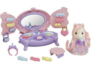 「ぜんぜん髪型がきまらないの、どうしよう。」 起きたばかりのぼさぼさヘアで困った様子のポニーの女の子、ジョイ。 「私も手伝ってあげる!ユニコーンのカチューシャでおそろいにしたいな〜」 宝石箱のようなドレッサーを開けると、