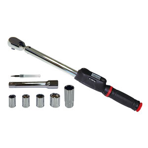 ソケット5個付き+ハードケース入り 付属品:14/17/19/24mmソケット 差込角:12.7mm 21mm薄口ロングソケット/エクステンションバー n・m(ニュートンメーター)表示 重量2.3kg 本体サイズ幅465mm×高さ45...