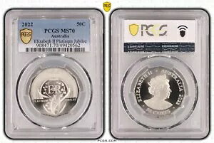 2022 Australia Queen Elizabeth II Platinum Jubilee 50c Coin PCGS MS70。コインの種類 10 進数構成プラチナ。2022 年。2000年代。国 オーストラリア。原産地 ...