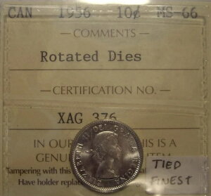 Canada Elizabeth II 1956 Rotated Die Silver Ten Cents - ICCS MS-66 (XAG-376)商品について額面 10セント流通/未流通組成 銀年 1956年地域 カナダ素材 銀...