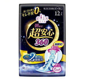 日用品>生理用品>生理用ナプキン>ナプキン 特に多い日の夜用>エリス 朝まで超安心 360 特に多い日の夜用 羽つき 36cm (12枚入)商品区分:医薬部外品【エリス 朝まで超安心 360 特に多い日の夜用...