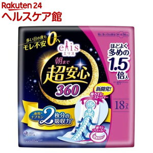 お店TOP>日用品>生理用品>生理用ナプキン>ナプキン 特に多い日の夜用>エリス 朝まで超安心 360 特に多い日の夜用 羽つき 36cm ほどよく多め (18枚入)商品区分:医薬部外品【エリス 朝まで超安心...