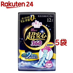 お店TOP>日用品>生理用品>生理用ナプキン>ナプキン 特に多い日の夜用>エリス 朝まで超安心 360 特に多い日の夜用 羽つき 36cm (12枚入*5袋セット)商品区分:医薬部外品【エリス 朝まで超安心...