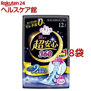 お店TOP>日用品>生理用品>生理用ナプキン>ナプキン 特に多い日の夜用>エリス 朝まで超安心 360 特に多い日の夜用 羽つき 36cm (12枚入*18袋セット)商品区分:医薬部外品【エリス 朝まで超安心...