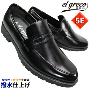 エルグレコ el greco メンズ 幅広5E ビジネスシューズ ブラック 靴 撥水仕様 ローファー プレーン ストレートチップ 紳士靴 冠婚葬祭 フォーマルシューズ ER1281 1282 1283...