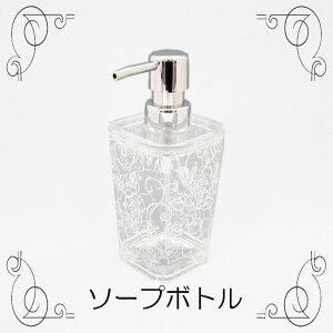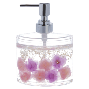 アクリルの中でピンクやパープルの淡いカラーのローズが ユラユラとゆらめくソープディスペンサーです。 まるで水中に美しいバラの花が浮かんでいるようなデザインに うっとりしてしまいます。 洗面台を一気に華やかに演出してくれるソ