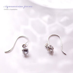 <透き通るような水々しい輝き、アクアブルー> 3月の誕生石でもあるアクアマリンは、聡明・幸せな結婚の象徴とされています。 澄んだ水のような清らかな淡い水色・・・ 透明感溢れる上質な輝きは、耳元を引き締め、清潔感と爽やかさを