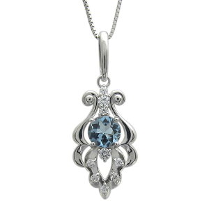 3月誕生石アクアマリンを使用したシルバー製の、アラベスク(唐草)モチーフネックレス(ペンダント)です。 ※【カラー3色の中から】お選び頂けます。 本体素材:シルバー925(ホワイトコーティング/イエローコーティング/ピンクコーティング)